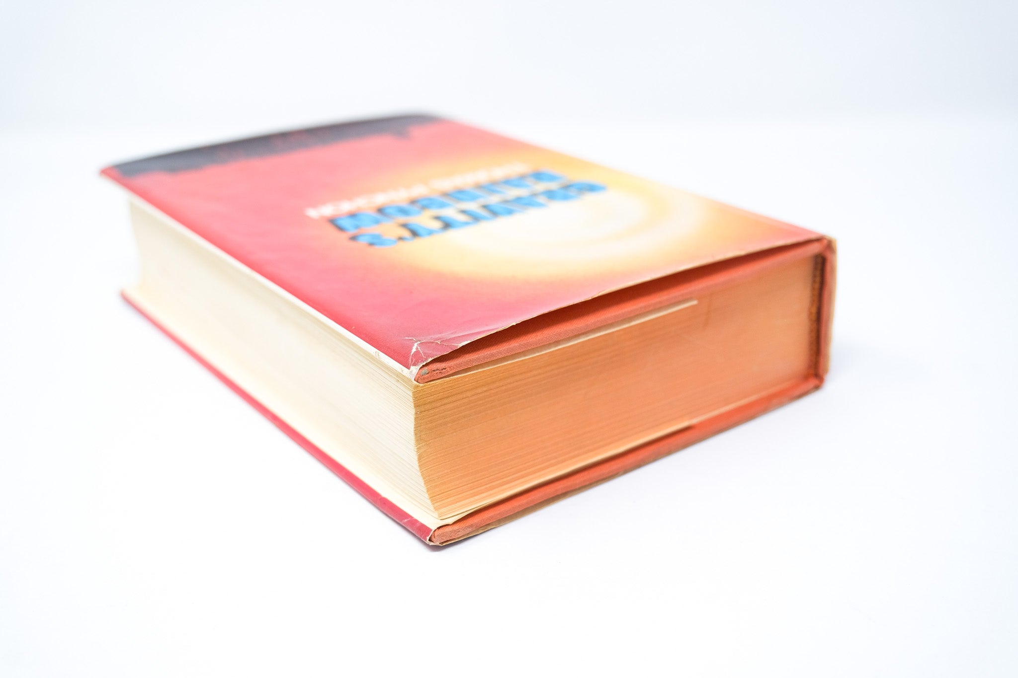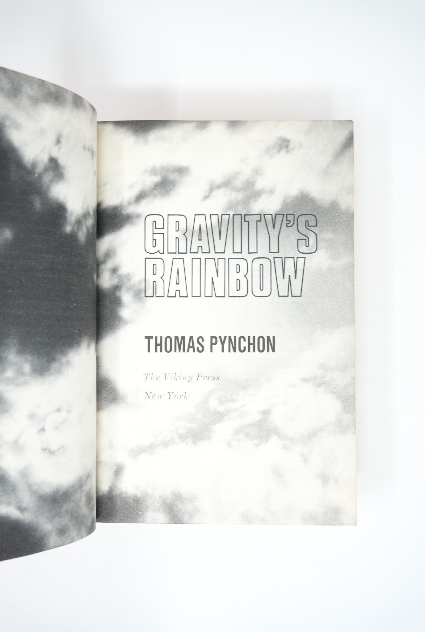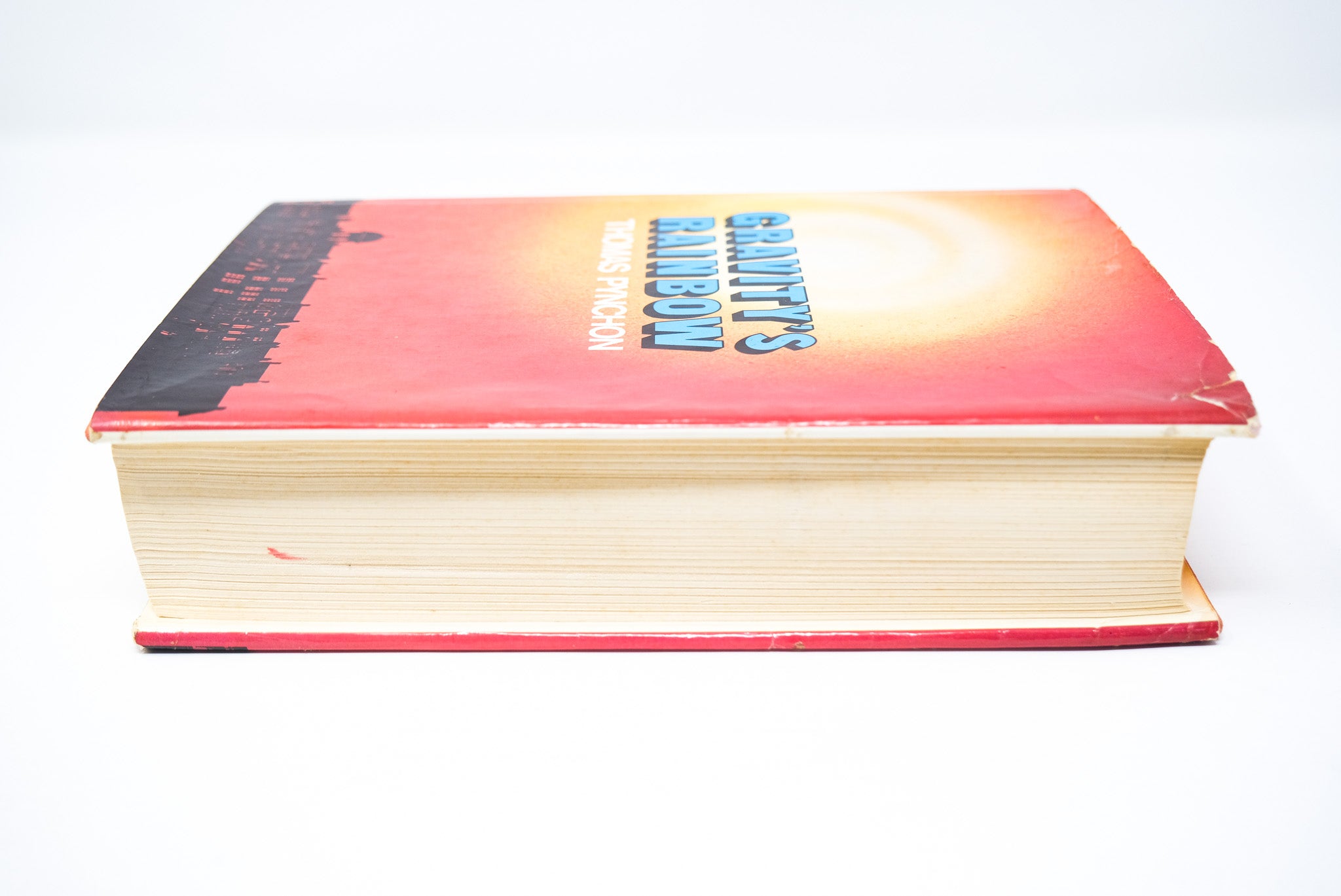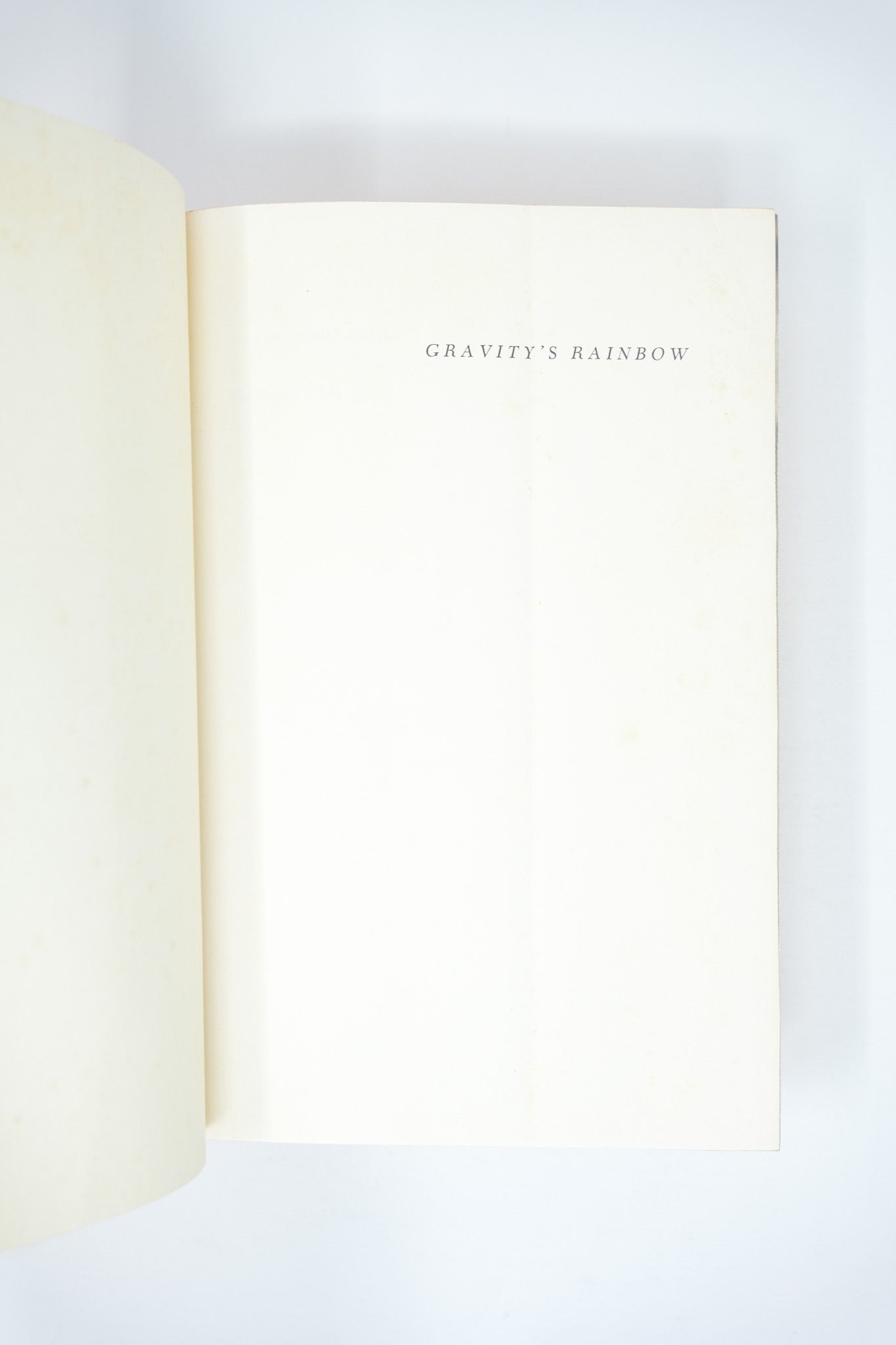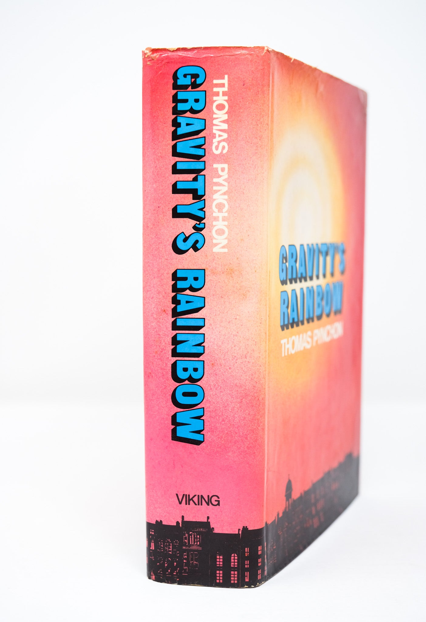 First edition. First printing. A sound, very good copy. Slight wear to the cloth.  A previous owner’s bookplate to the front pastedown. Some foxing to the pastedowns and endpapers. The orange topstain a bit faded. A vertical crease on the half title page, extending with decreasing visibility to subsequent pages until pp. 30. A little mark to the fore-edge of the outer text block, but the contents fine. In a very good, unclipped dust jacket, with hardly any of the usual toning to the spine. Slight edgewear and a small closed tear at the top right corner of the front panel, with a discrete tape reinforcement at the verso. A very nice example in the bright dust jacket. Pynchon’s masterpiece, lauded as one of the greatest American novels.